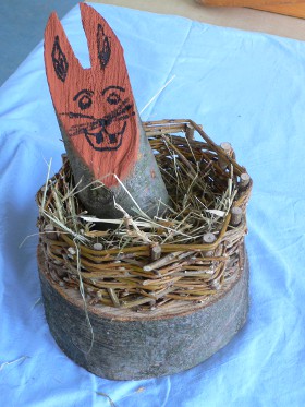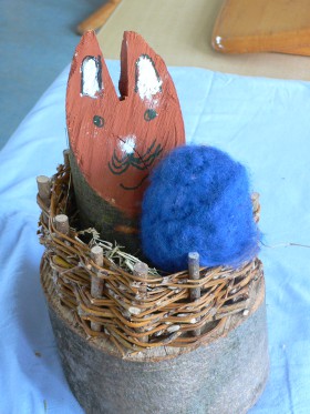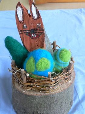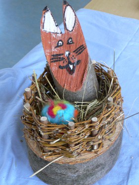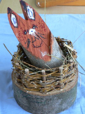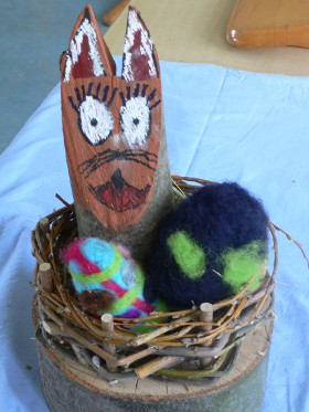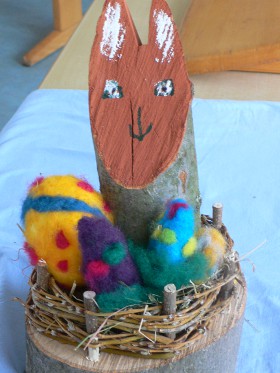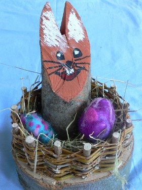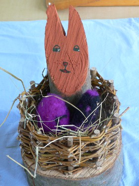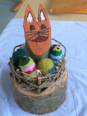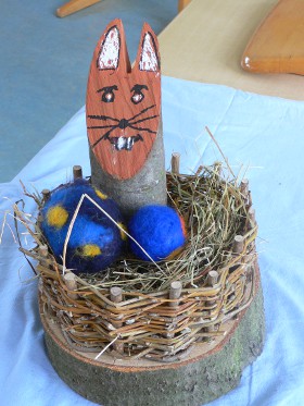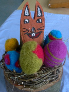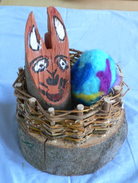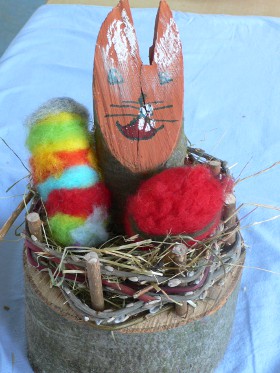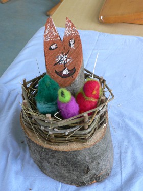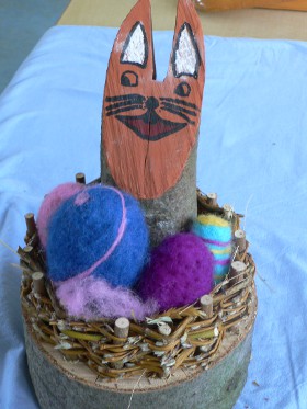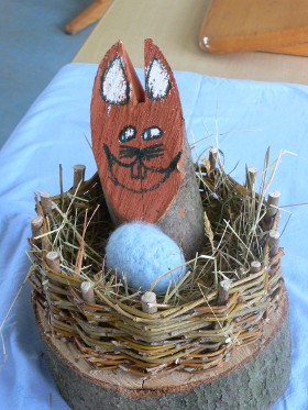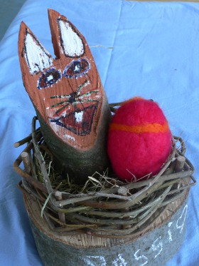 ich wünsche euch frohe Ostern. Ich wünsche, dass ihr gesund bleibt. Ich habe euch ein Nest aus Weiden gebaut und einen Hasen aus Holz. Ich habe ihn angemalt. Im Nest ist ein gefilztes Ei. Ihr habt den Text gefunden und ich hoffe, ihr habt ein schönes Osterfest. Eure Jasmin Osterwünsche