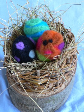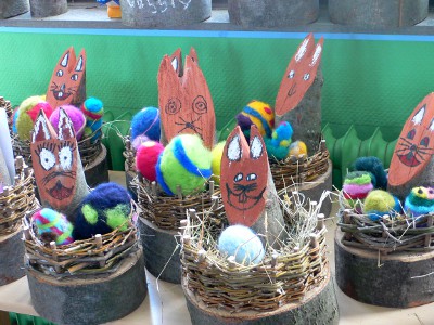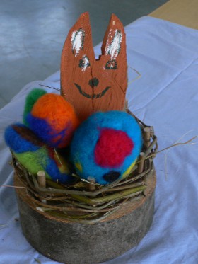 wir haben mit Kurt Osternester gemacht. Wir haben Heu rein. Wir haben Styroporeier mit Filzwolle umfilzt. Schöne Ostern. von Nels Liebe Annkiii,