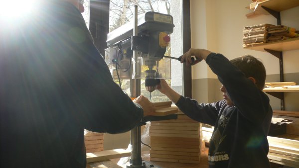 Er hat mit uns auch andere Sachen gemacht, zum Beispiel Fledermauskästen, Fledermausanhänger, Tulpen und vieles mehr.