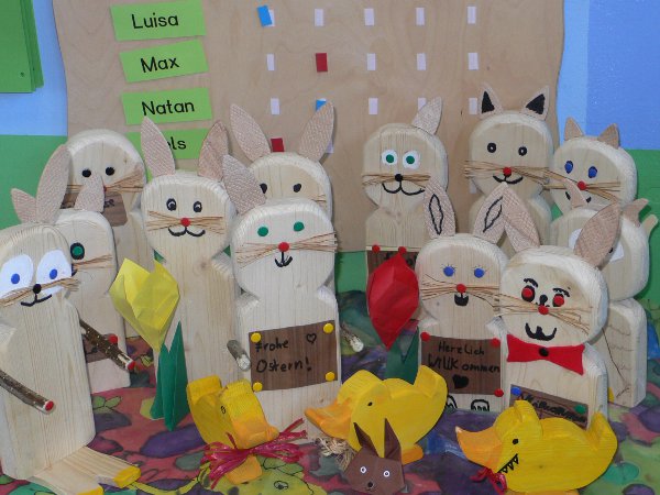 Eigentlich wollten wir nur Osterhasen machen, aber es haben welche einfach Katzen und Eulen gemacht.