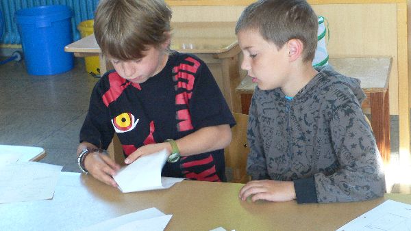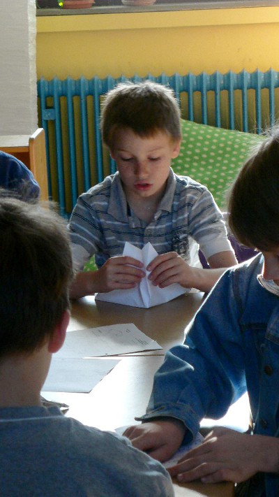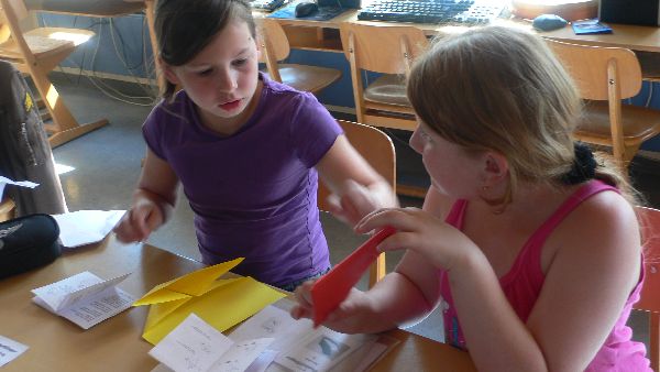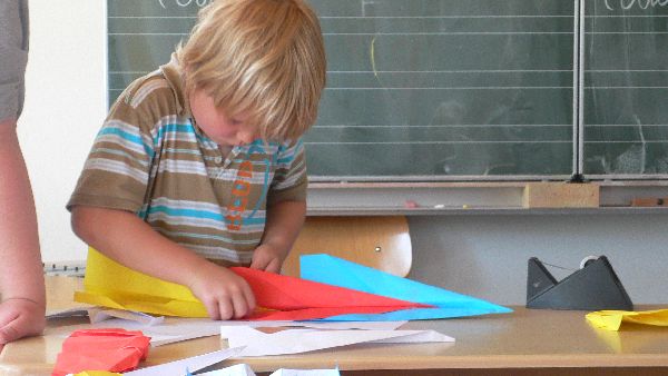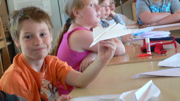 Die Projektgruppen "Papierflieger für Fortgeschrittene" faltet ihre Flieger nach anspruchsvollen Anleitungen.