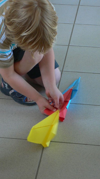 Drei Flieger stehen zru Auswahl. Je nachdem, was man mit seinem Flieger bezwecken möchte, werden die Faltungen gemacht.
