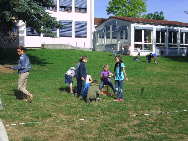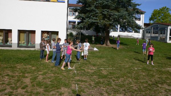 Flugobjekte aller Art und Hubschrauber bauen wird ihr Thema sein. Auf der Suche nach kuriosen Ideen wird es sicher abenteuerliche Konstruktionen geben. Gemeinsamer Start auf der Schulwiese Ist Papierflieger gleich Papierflieger? Ausgestattet mit Papier, Kleber und guten Flugvorsätzen machte sich jedes Kind zunächst daran, einen Papierflieger zu falten, der möglichst weit fliegen sollte. Natürlich wurden die Flugweiten gemessen und dokumentiert. Ein großer Spaß für alle auf der Schulwiese. Im Anschluss wurden die Kinder in die jahrgangsgemischten Gruppen entlassen und dürfen eine Woche lang experimentieren, tunen und den Traum vom Fliegen ein bisschen weiterträumen.