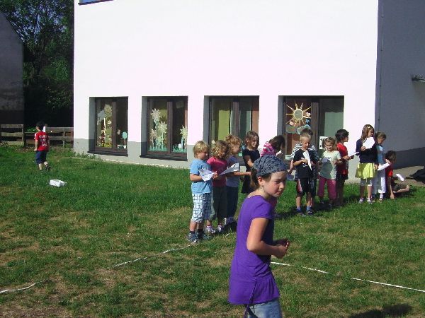 Flugbegleiter - die Großen helfen den Kleinen beim Notieren der Flugweiten.